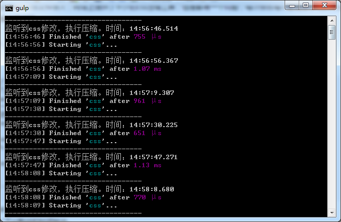 console.log('监听到css修改,执行压缩。时间:' + getTime());