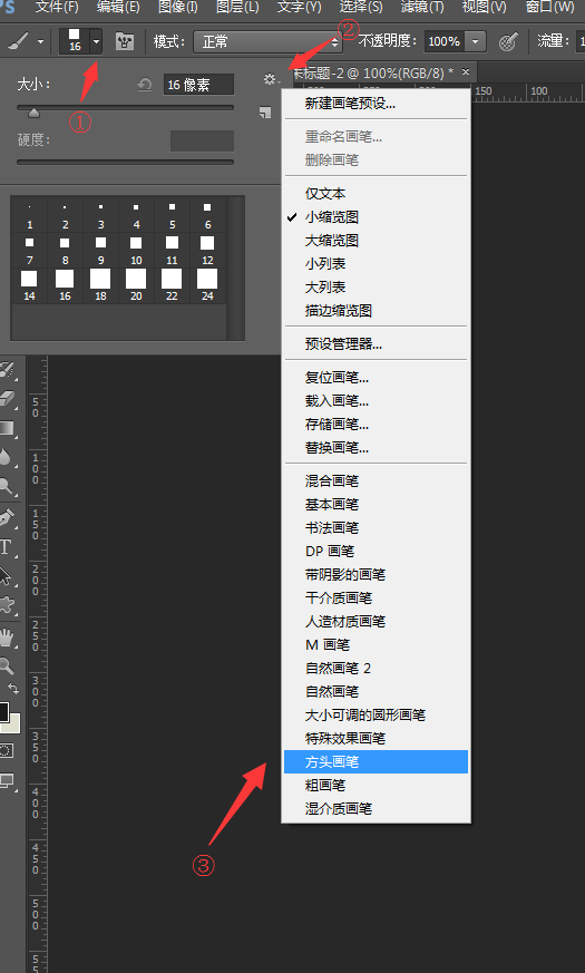 虚线,就是一条线按照相同间距断开而产生的。这里选择方形笔头。当然正常情况下是不会出现方形笔头的。根据序号顺序可以选择方形笔头